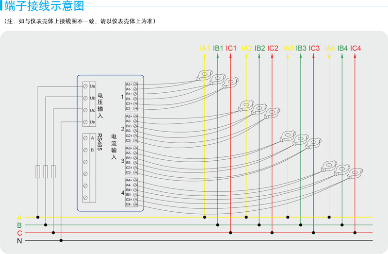 ○ 每个回路的A、B、C三相又可以分别计量单相的正反向有功、无功电能